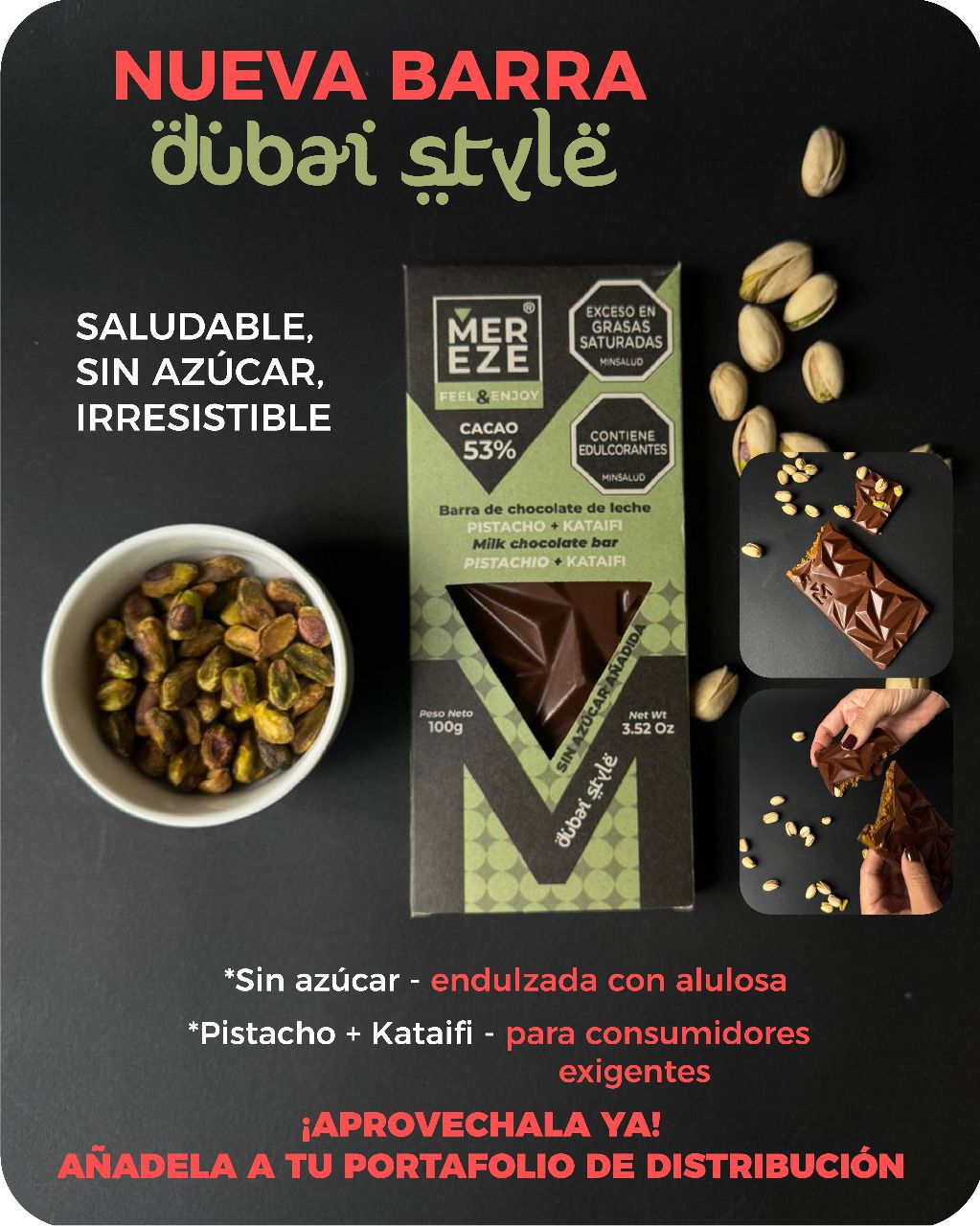 Barra de chocolate saludable Pistachos y Kataifi 100 GRM